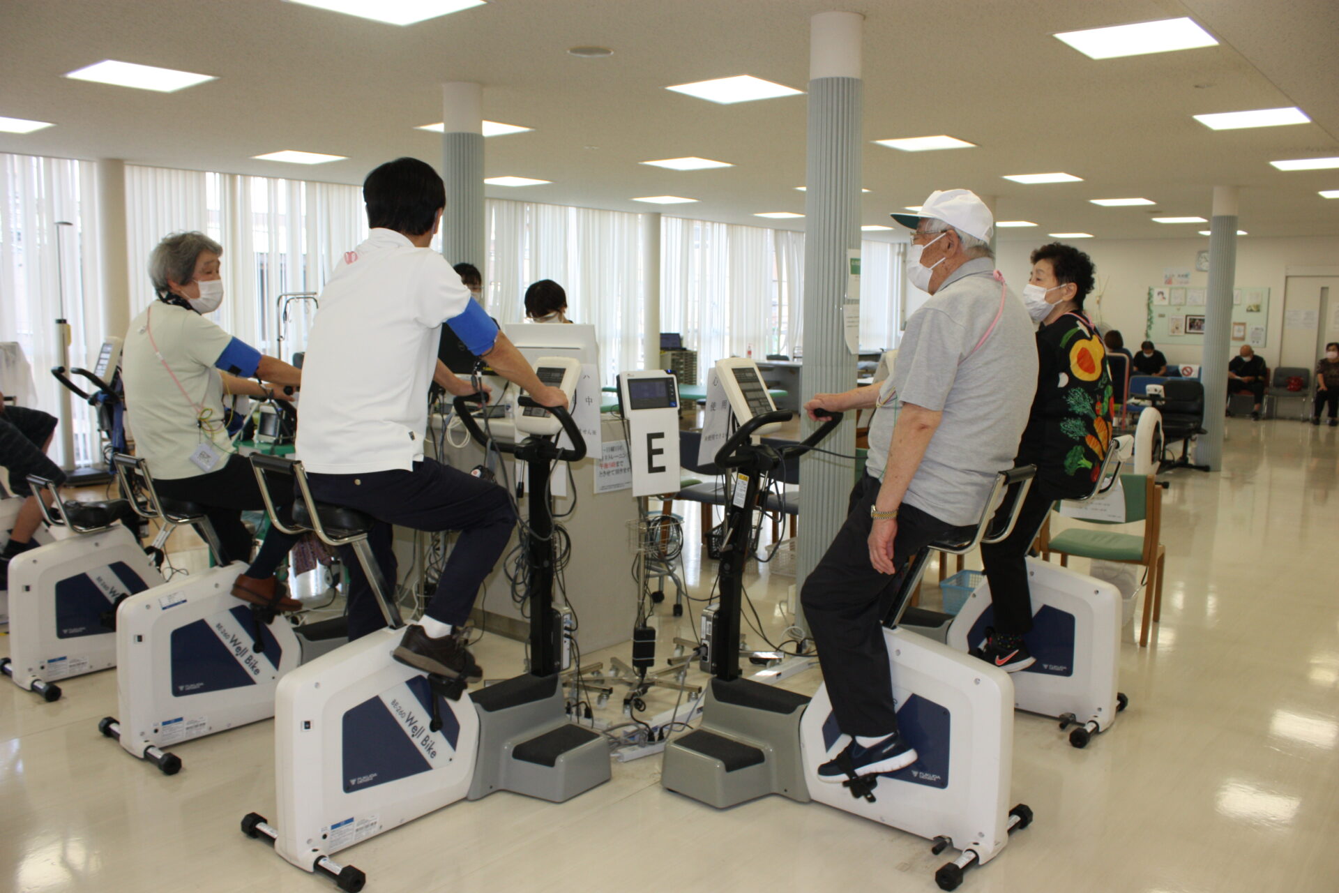 高血圧を基盤とする心筋梗塞や狭心症、急性大動脈解離の術後、心臓弁膜症や心不全患者さんに対して心電図、酸素飽和度、心拍数をモニタリングしながら、筋力トレーニングやストレッチング、有酸素運動を理学療法士が監視しながら行います。