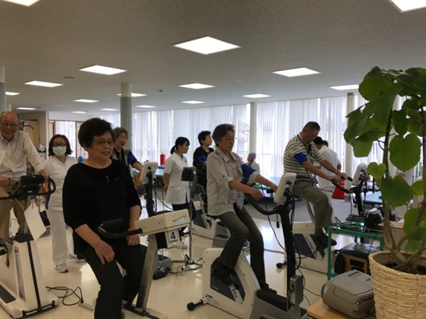 高血圧を基盤とする心筋梗塞や狭心症、急性大動脈解離の術後、心臓弁膜症や心不全患者さんに対して心電図、酸素飽和度、心拍数をモニタリングしながら、筋力トレーニングやストレッチング、有酸素運動を理学療法士が監視しながら行います。
