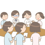 当院では、摂食・嚥下認定看護師、言語聴覚士、理学療法士、作業療法士、管理栄養士でチームを結成しており、週一回の食事評価で食事姿勢の評価や食事形態の調整、食事介助の検討などを行っています。