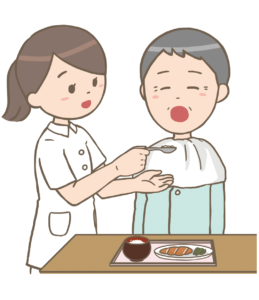 入院生活の楽しみである“食べる”といった行為を安全に行えるようにチーム全員で支援していきます。