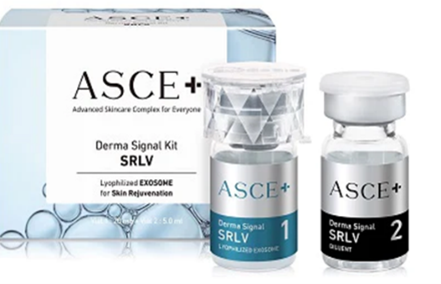 ASCE+ SRLV(ヒト脂肪幹細胞由来、高純化エクソソーム)エクソソームとは、細胞から分泌される直径50-150 nm(ナノメートル:10億分の1メートル)の顆粒状の物質です。美容医療の分野では、エクソソームは表皮細胞やコラーゲン、エラスチンを生成する線維芽細胞などの細胞間を移動して細胞の活性化に必要な物質を届けることで、美肌(抗炎症、皮膚バリア再生、創傷治癒など)、しわ・しみの改善(細胞増殖、皮膚再生)といった作用をもたらす効果が期待されています。