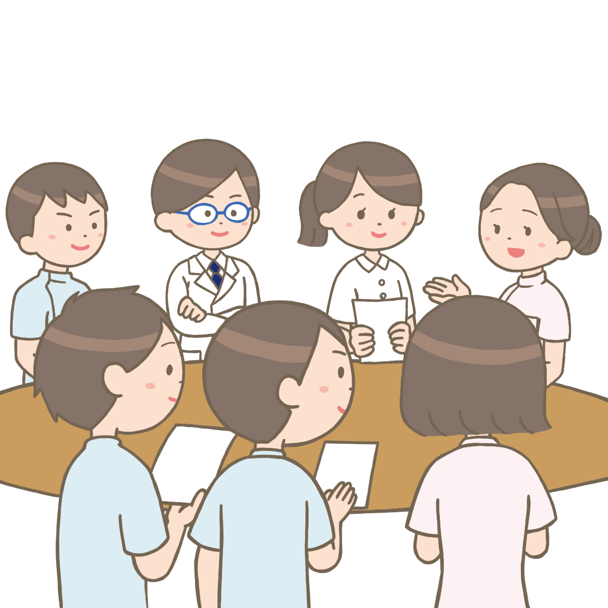 平日、毎日行われている患者さんのケースカンファレンスでは、各々が意見を出し合い、患者さん個々に合わせた看護について議論を交わし、患者さんが笑顔で退院できるよう支援しています。