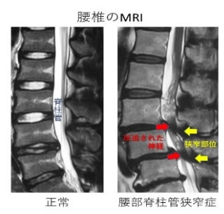 脊柱管内を通る神経の束の馬尾が圧迫される。