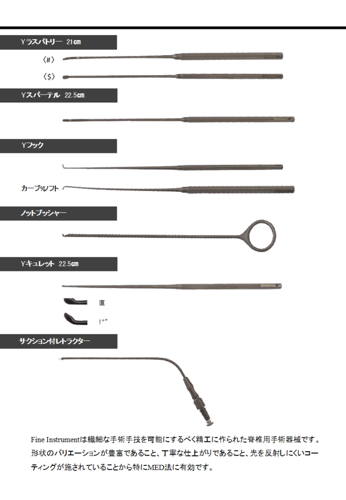 このFine Instrumentsは繊細な手術手技を可能にするべく、精巧に作られた脊椎用手術器械です。(図3,4)
