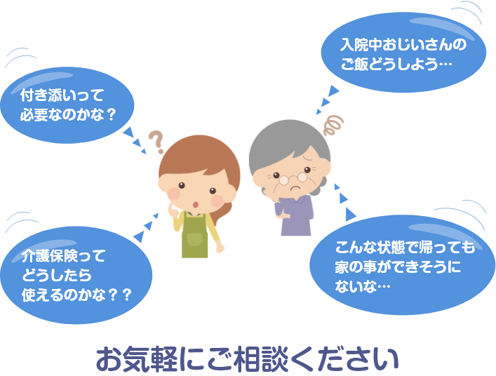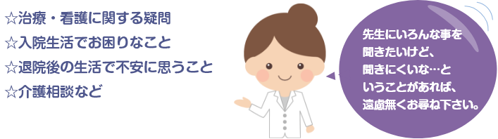 治療・入院等について、お困りのこと、わからないことがございましたら、お気軽にご相談ください。