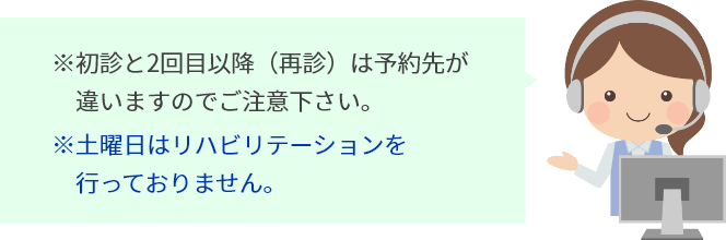 - 当院予約センターにて整形外科の診察予約をお取り下さい。